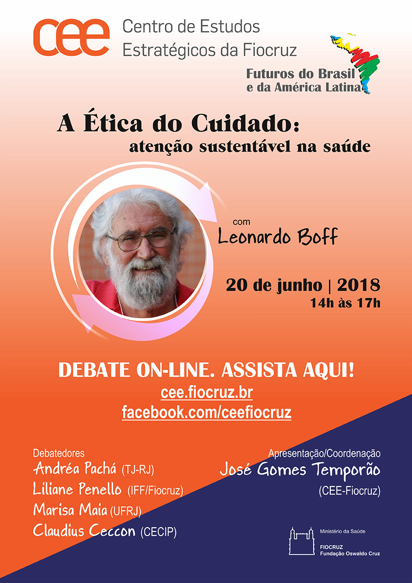 O teólogo e escritor Leonardo Boff estará quarta-feira, às 14h, no CEE-Fiocruz, para conversar com o ex-ministro José Gomes Temporão, a juiza Andréa Pachá, as pesquisadoras Liliane Penello e Marisa Maia, e o jornalista e cartunista Claudius Ceccon , sobre A ética do cuidado: atenção sustentável na saúde [informações aqui] O debate girará em torno do conceito de cuidado, trabalhado por Boff no livro O cuidado necessario: na vida, na saúde, na educação, na ética e na espiritualidade, publicado pela Editora Vozes, em 2012, que lhe permite pensar a espiritualidade e as relações do homem com o outro e com a terra, inaugurando uma nova forma de tratar a ideia de sustentabilidade.