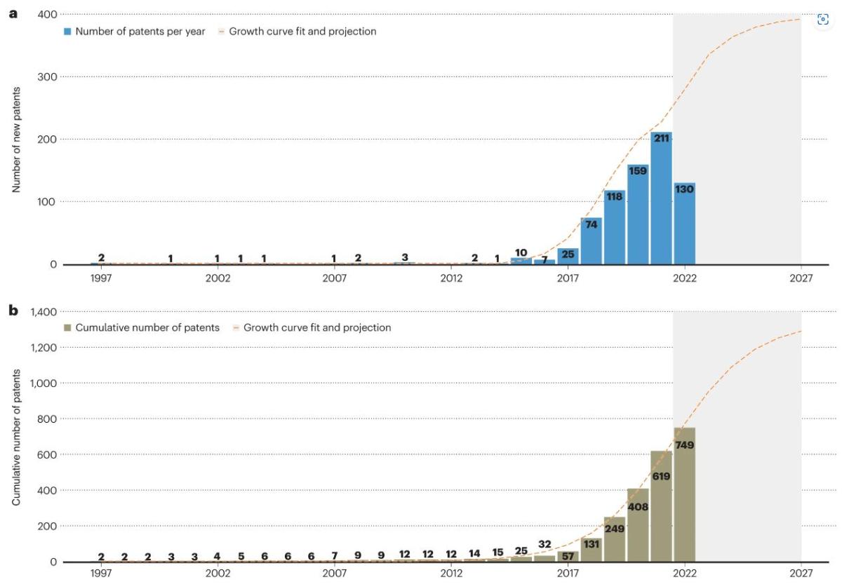 Um estudo do Instituto Oswaldo Cruz (IOC/Fiocruz) revela o crescimento acelerado de aplicações de inteligência artificial voltadas para o enfrentamento do câncer.  Publicado na revista Nature Biotechnology, o trabalho analisou os registros globais de patentes na área, mostrando a expansão de novas tecnologias, principalmente ligadas a análise de imagens, biomarcadores, detecção precoce da doença e modelagem de expressão genética.  Realizado numa base de dados que reúne informações sobre mais de 50 escritórios de patentes do mundo, o levantamento identificou 749 registros para aplicações de IA na oncologia.  As primeiras invenções datam de 1997, porém mais de 95% dos registros ocorreram após 2015. Em sete anos, de 2015 a 2022, o número de patentes saltou de 25 para 749, o que corresponde a uma taxa de crescimento média de 53% ao ano.