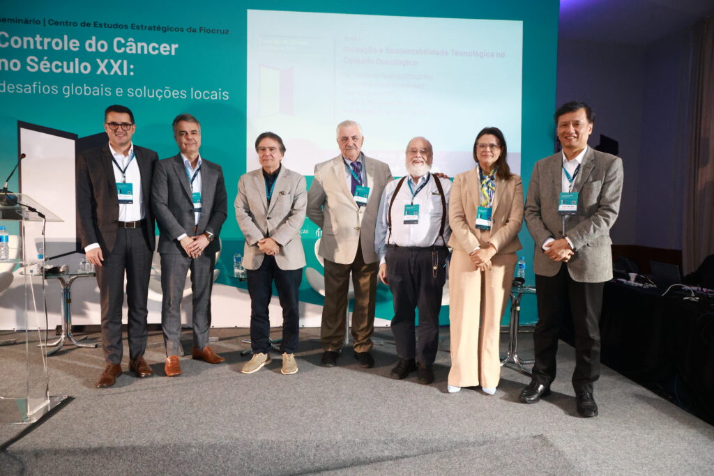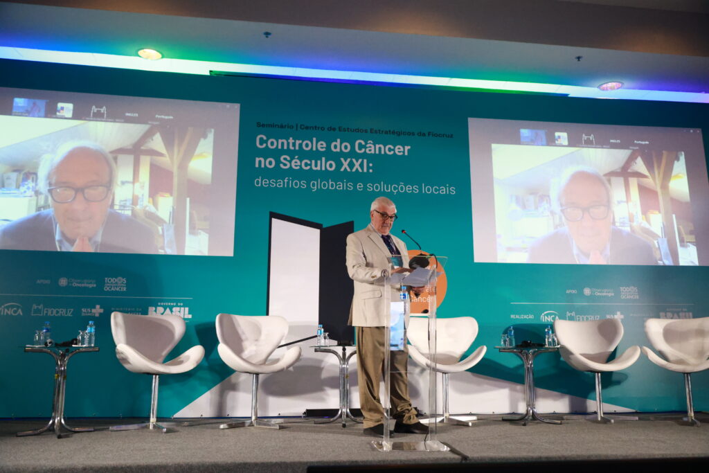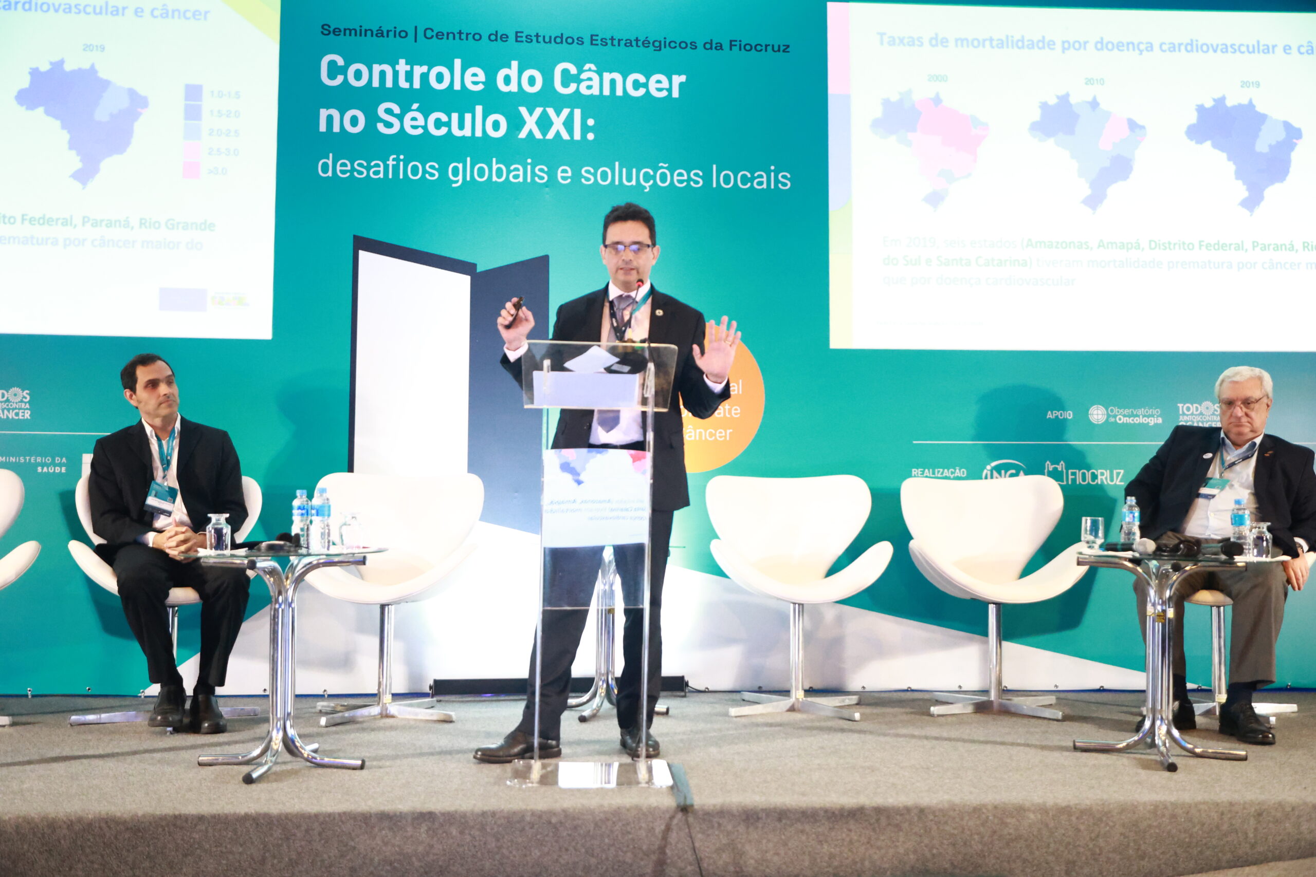 Anfitrião científico e ex-diretor-geral do INCA/MS, Luiz Antonio Santini, do Grupo de Pesquisa Doenças Crônicas e Tecnologias de Saúde do Centro de Estudos Estratégicos da Fiocruz (CEE-Fiocruz), e do próprio seminário.