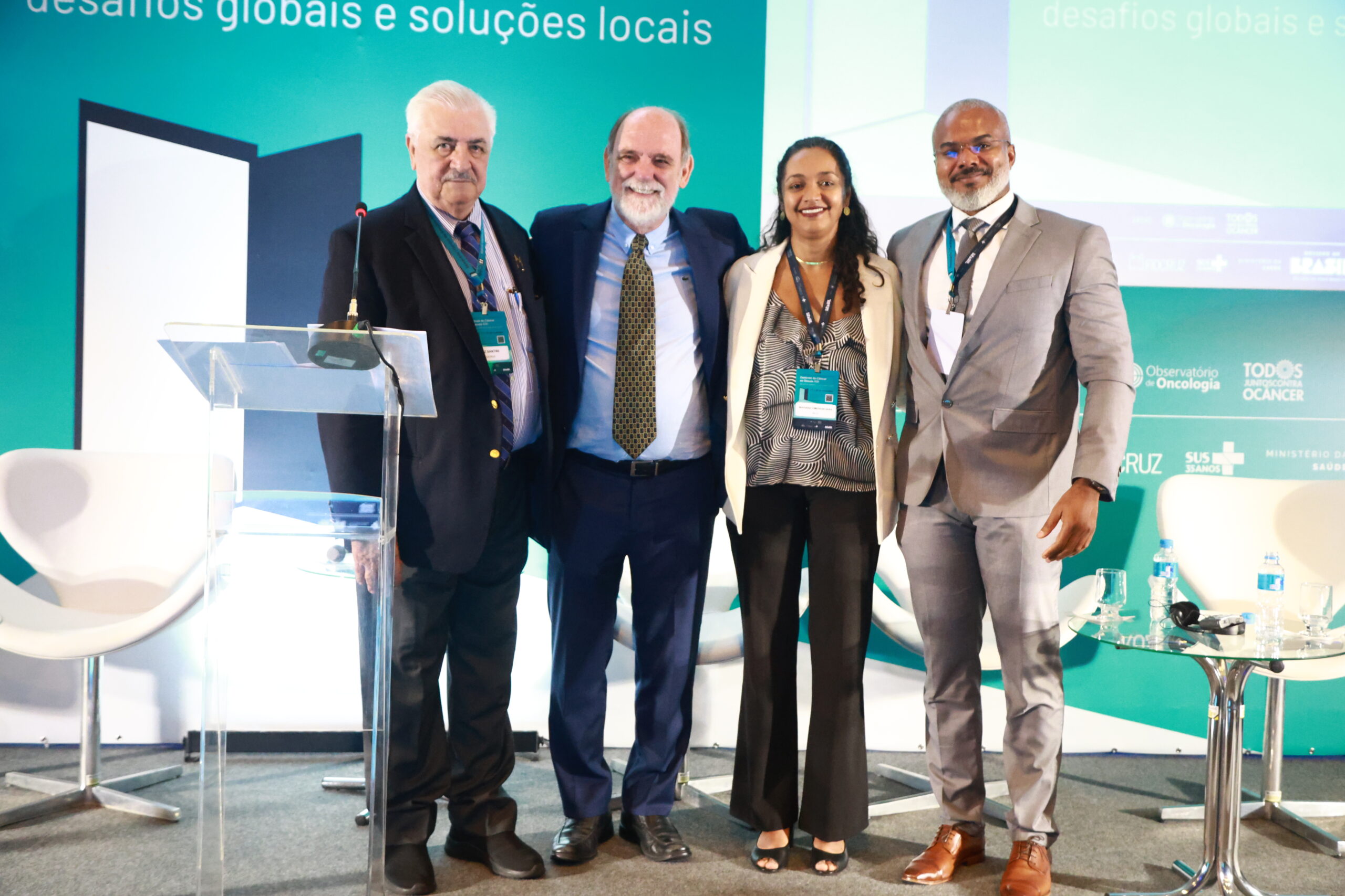 Participação: Nina Melo, pesquisadora do TJCC; Luiz Augusto Maltoni Jr., diretor executivo da Fundação do Câncer; Angela Fernandes Leal da Silva, Secretaria de Atenção Primária do Ministério da Saúde (SAPS/MS) e Ana Estela Haddad, secretária de Informação e Saúde Digital do Ministério da Saúde (SEIDIGI/MS).